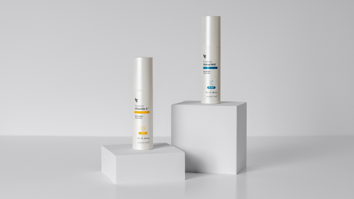 Forever Vitamin C ja Forever Bakuchiol sopivat yhteen kaikkien muiden ihonhoitotuotteidemme kanssa. Voit helposti sisällyttää ne aamu- ja iltarutiineihisi.